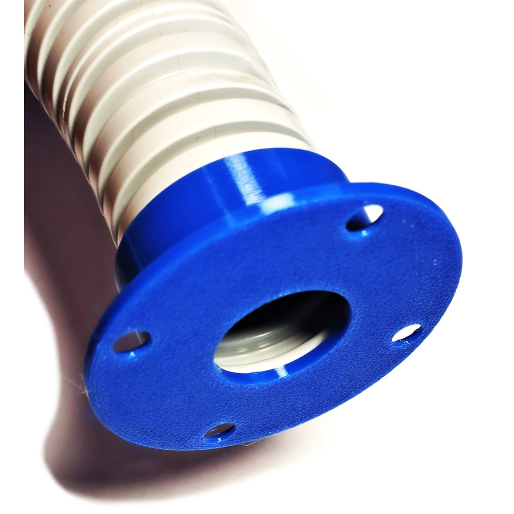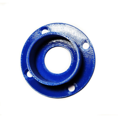 Vyrobeno 3D tiskem z PET G materiálu. Určeno pro flexi elektrikářskou chráničku vnějšího průměru 32mm a vnitrního průměru cca 25mm. Tento rozměr je udáván odborníky jako vhodný pro vstupní chodby čmelínů. Příruba je určena zejnéma k uchycení chodby uvnitř čmelína k obvodové stěně.